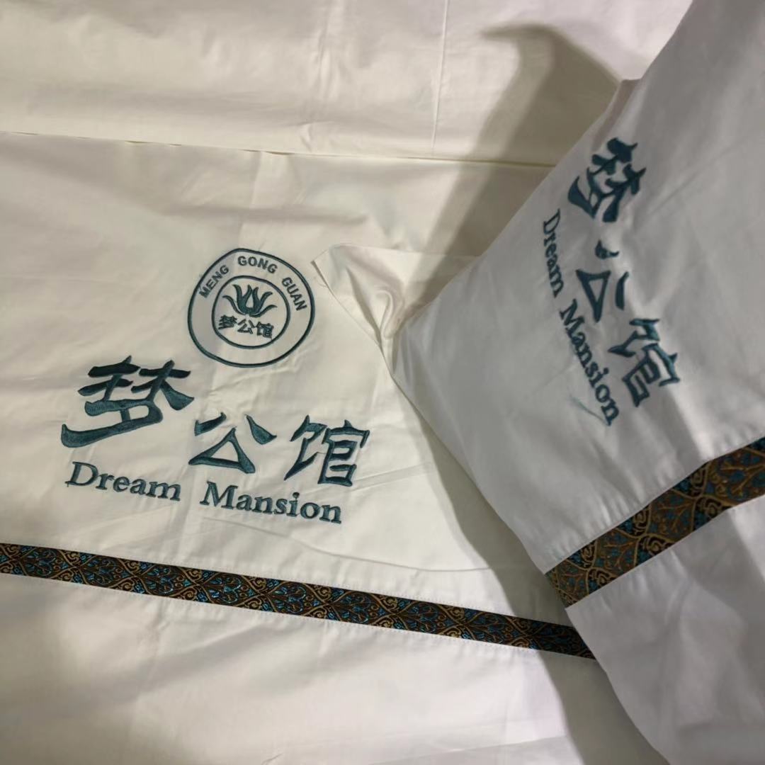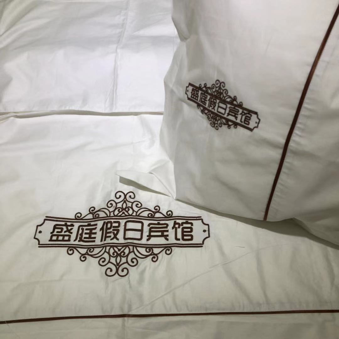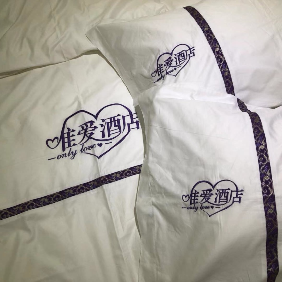 摘要:金辰家具部分刺绣款床上用品实拍图,支持定制酒店名称logo等...